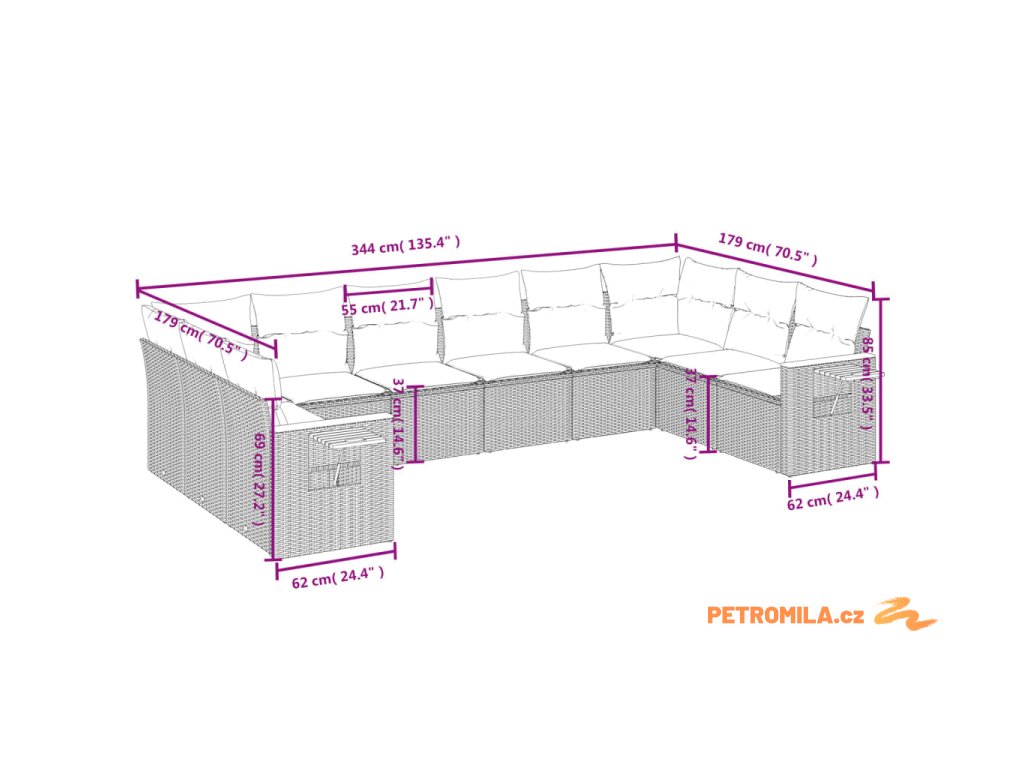 Sada zahradních pohovek s úložištěm 11 pcs Šedá Poly ratan