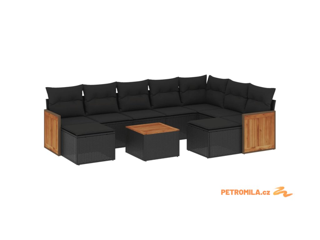 10dílná zahradní sedací souprava s poduškami černá polyratan