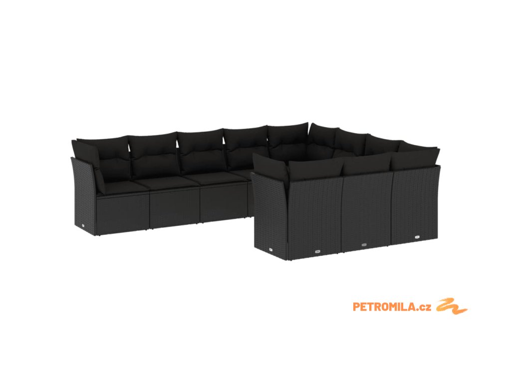 10dílná zahradní sedací souprava s poduškami černá polyratan
