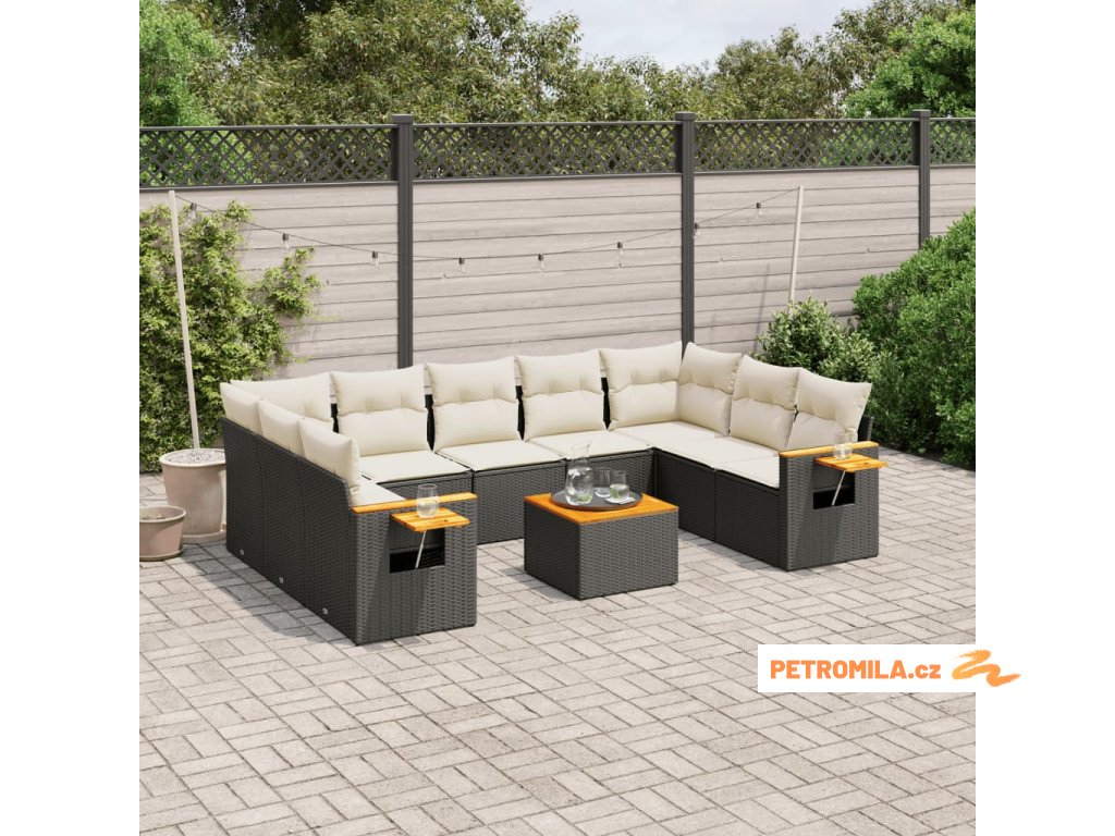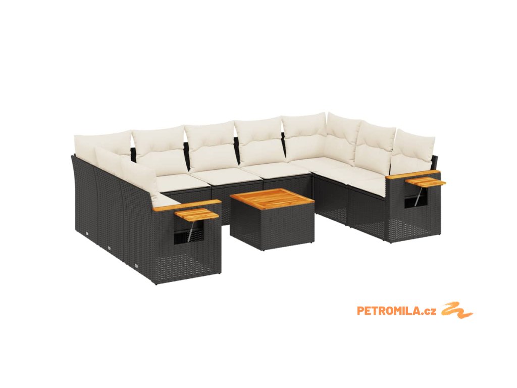 10dílná zahradní sedací souprava s poduškami černá polyratan