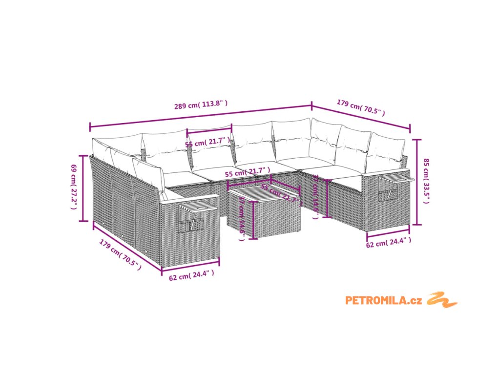 Sada zahradních pohovek s polštářem 9 pcs Béžová Poly ratan
