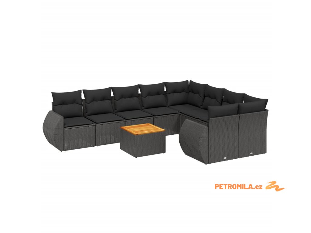 10dílná zahradní sedací souprava s poduškami černá polyratan