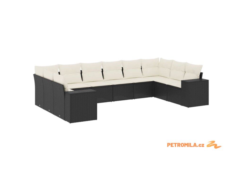 10dílná zahradní sedací souprava s poduškami černá polyratan