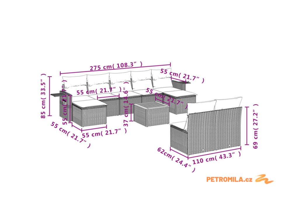 Sada zahradních pohovek s polštářem 9 pcs Béžová Poly ratan