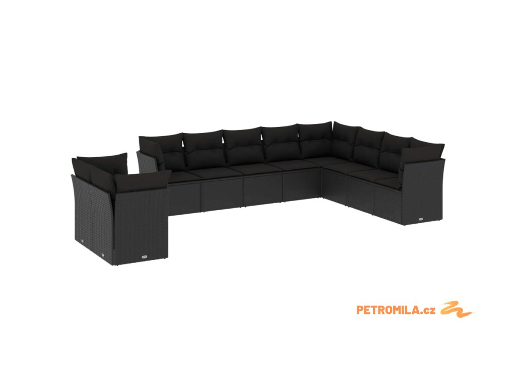 10dílná zahradní sedací souprava s poduškami černá polyratan