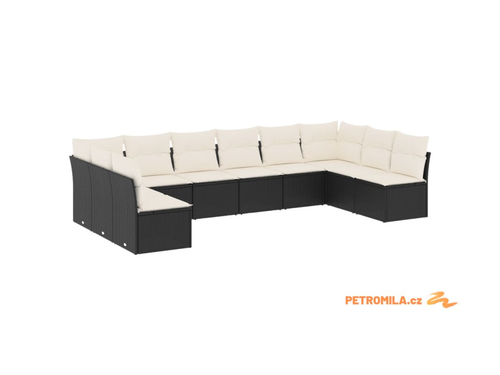 10dílná zahradní sedací souprava s poduškami černá polyratan