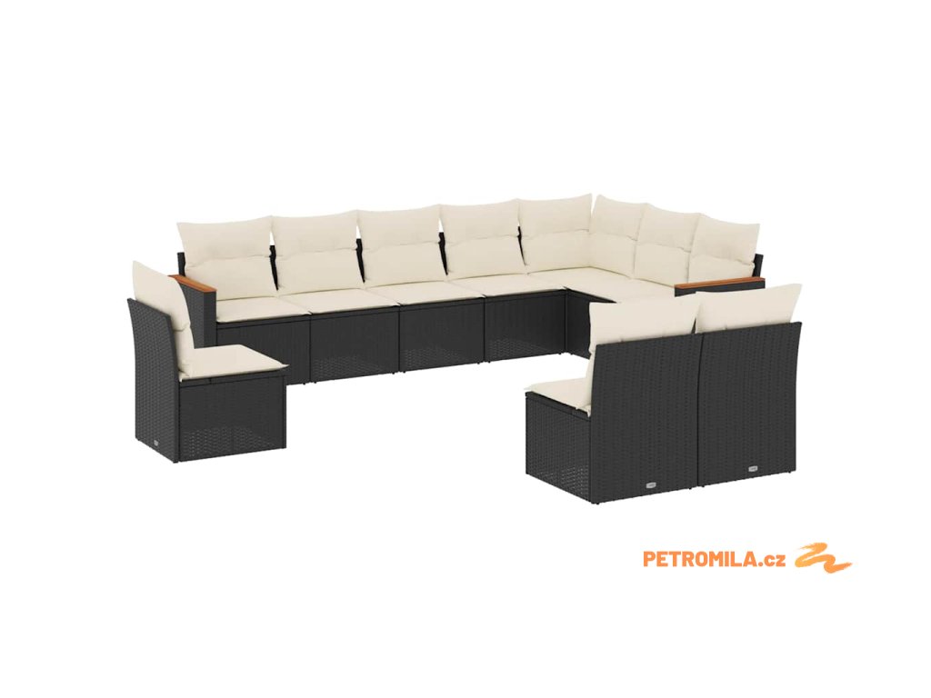 10dílná zahradní sedací souprava s poduškami černá polyratan