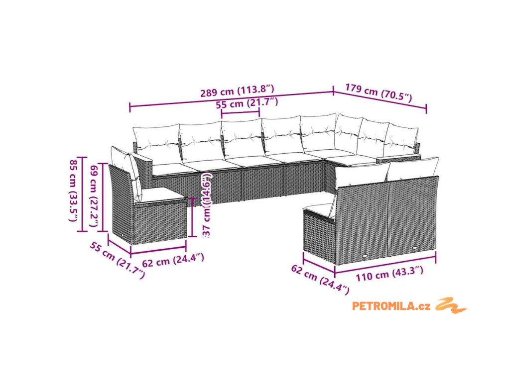 Sada zahradních pohovek s úložištěm 11 pcs Šedá Poly ratan