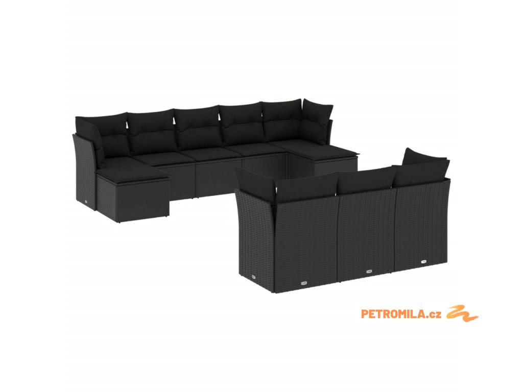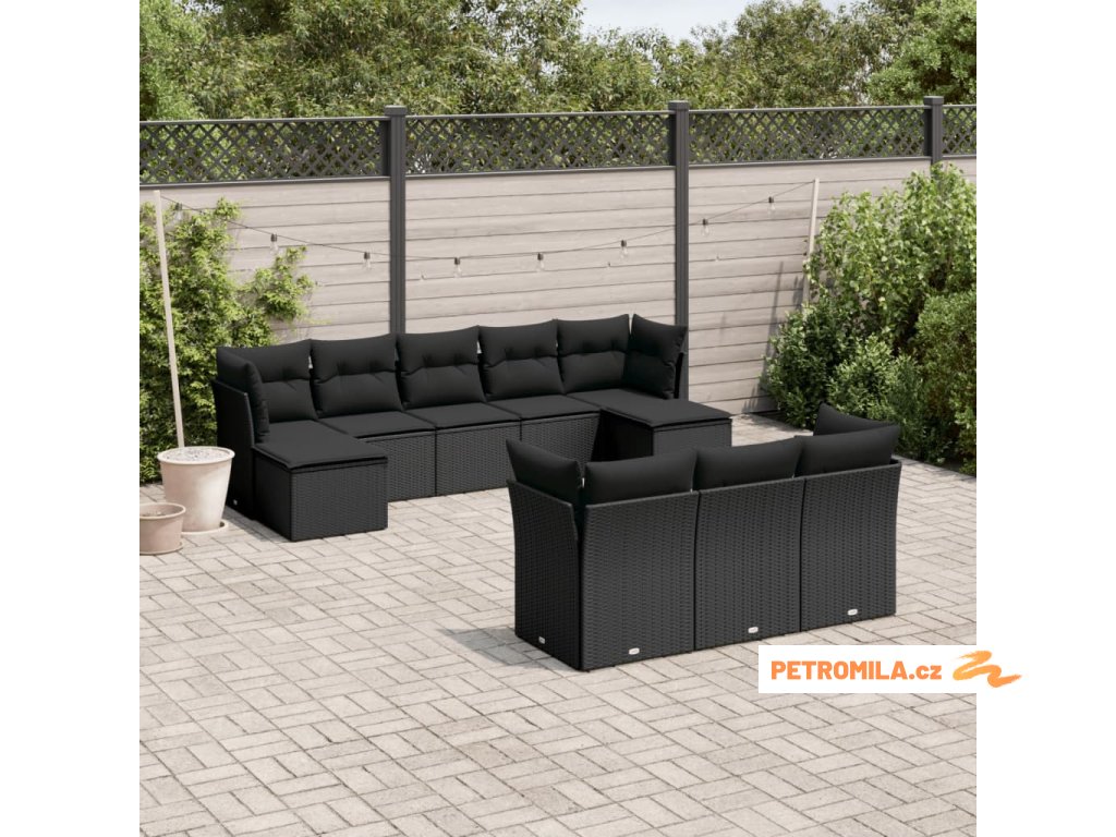 10dílná zahradní sedací souprava s poduškami černá polyratan