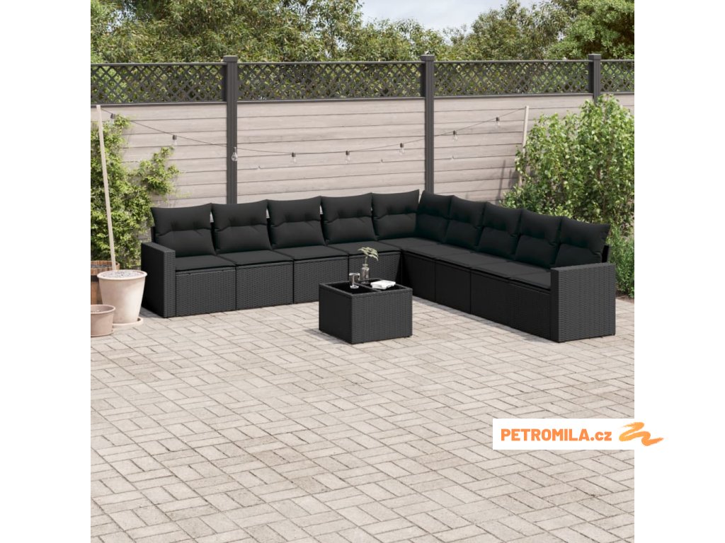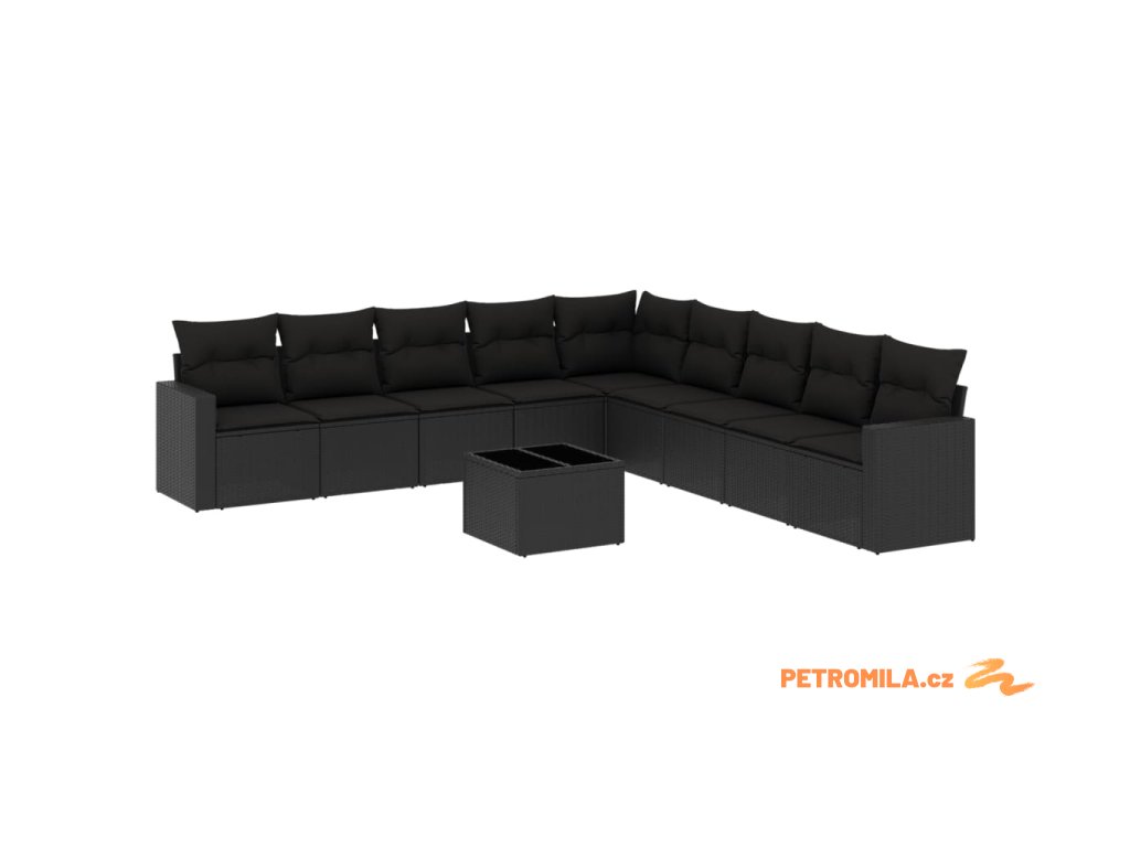 10dílná zahradní sedací souprava s poduškami černá polyratan