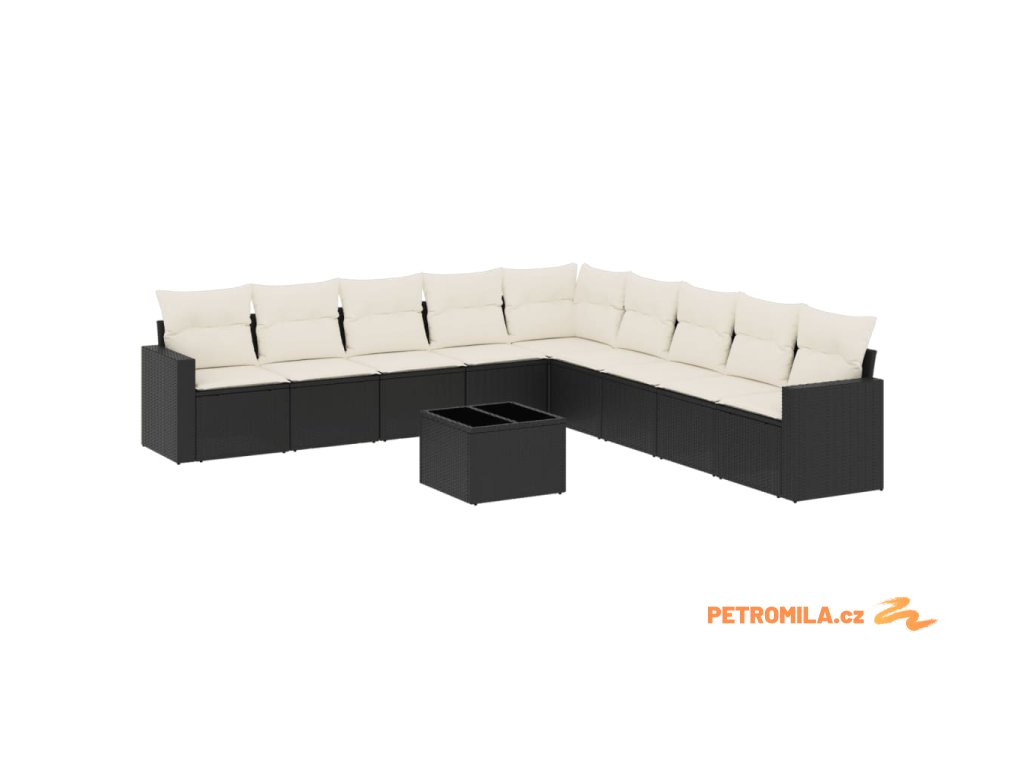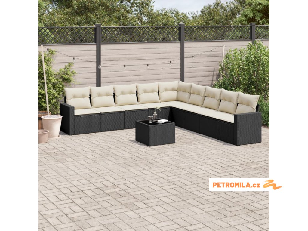 10dílná zahradní sedací souprava s poduškami černá polyratan