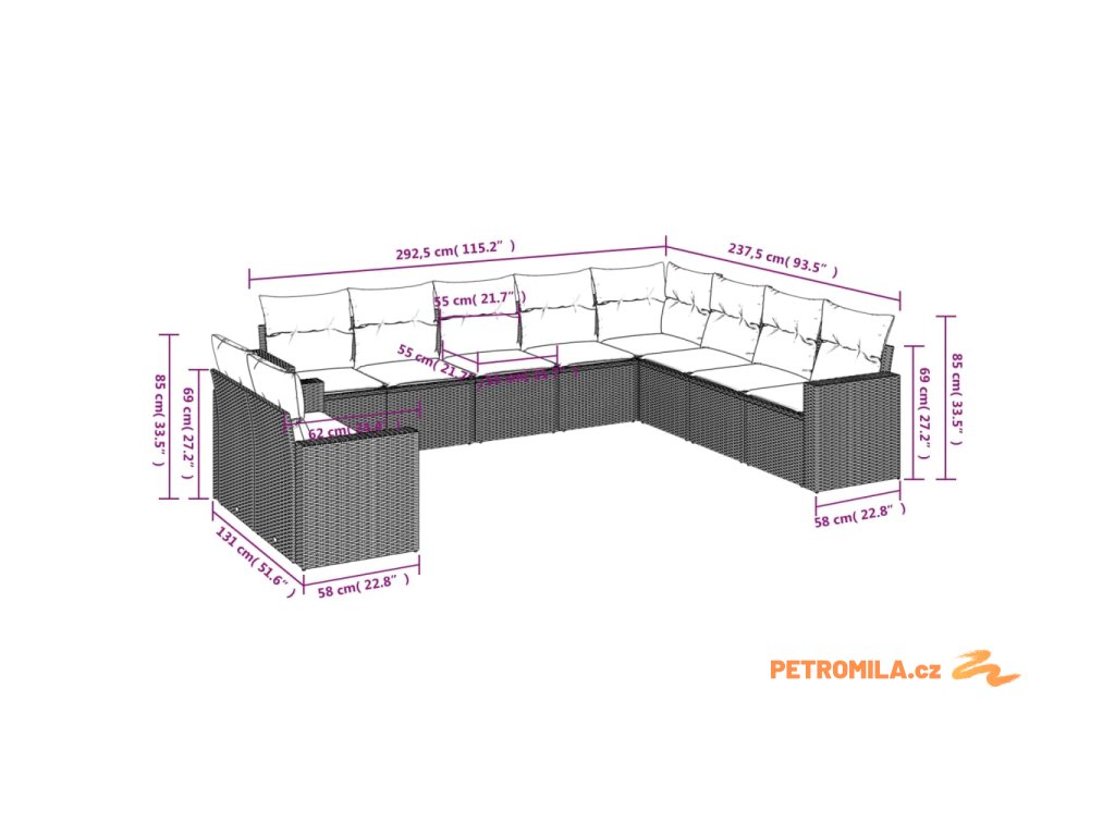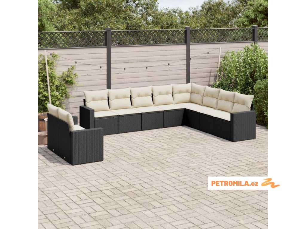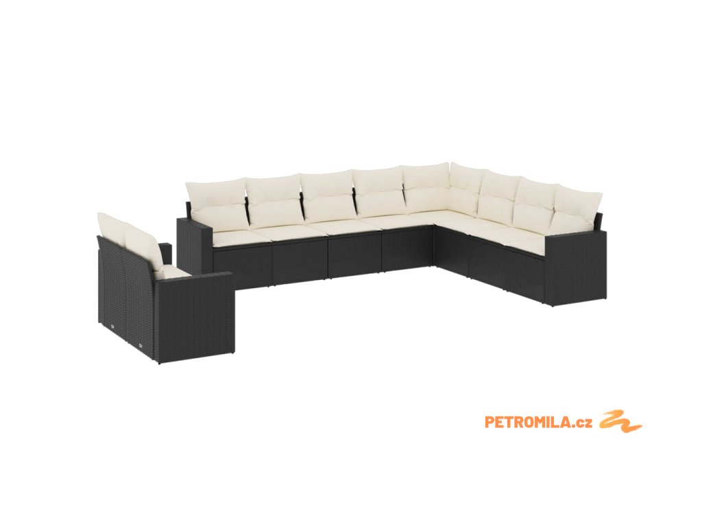 10dílná zahradní sedací souprava s poduškami černá polyratan