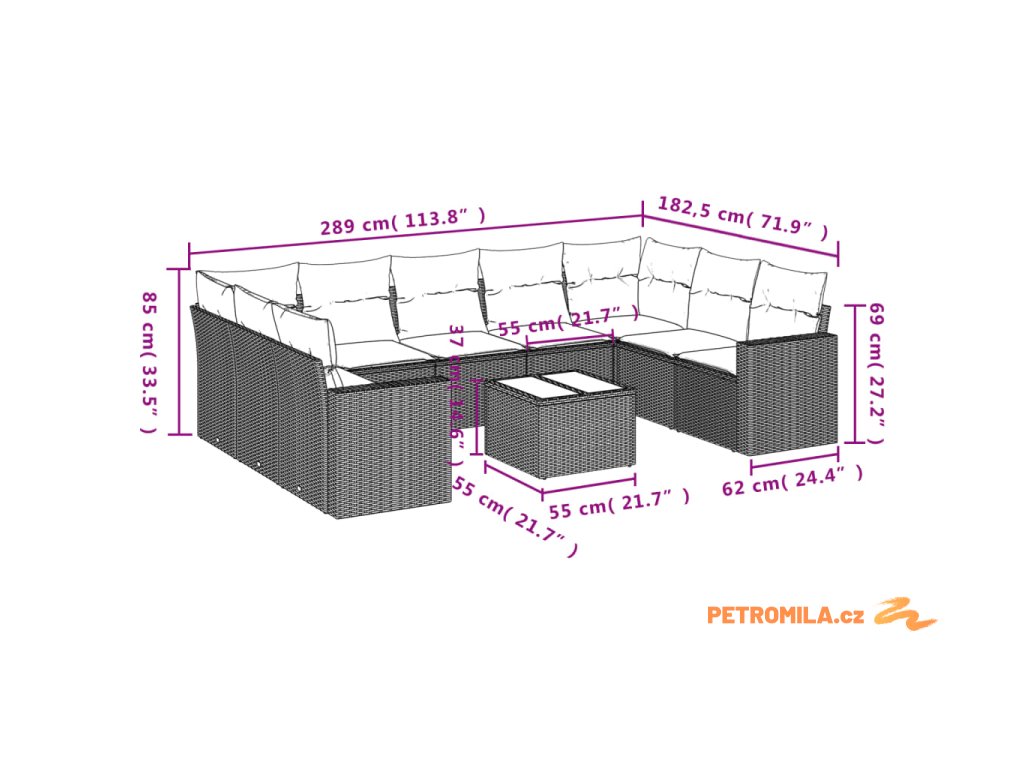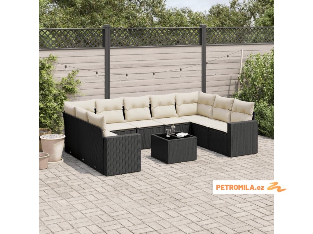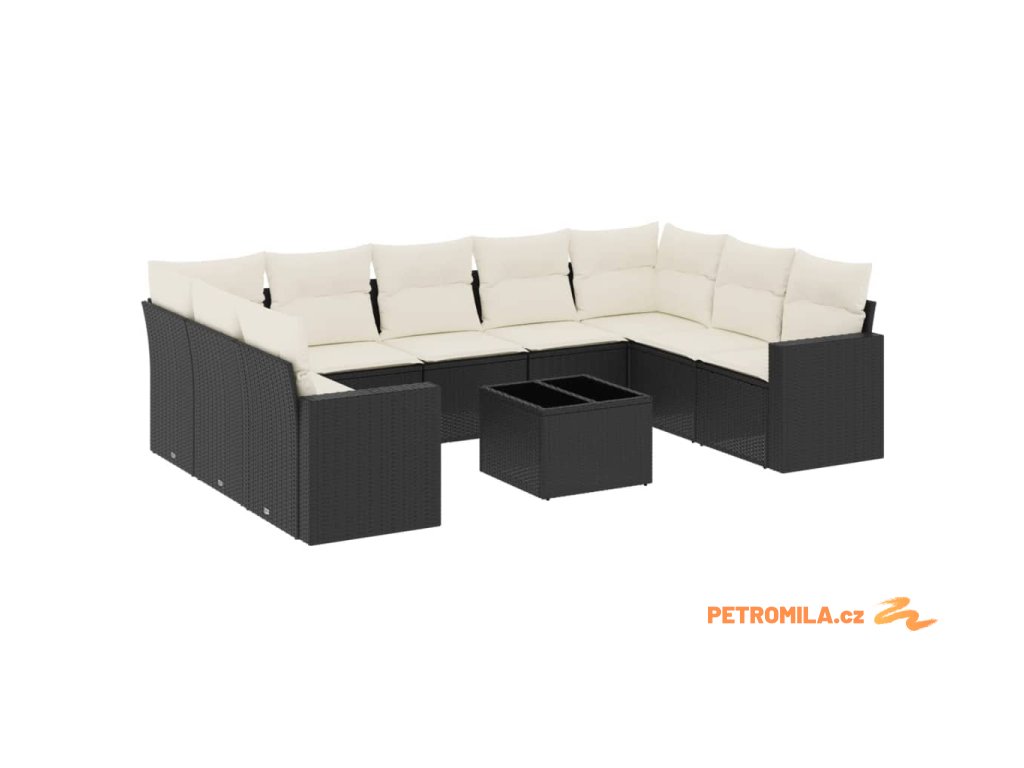 10dílná zahradní sedací souprava s poduškami černá polyratan