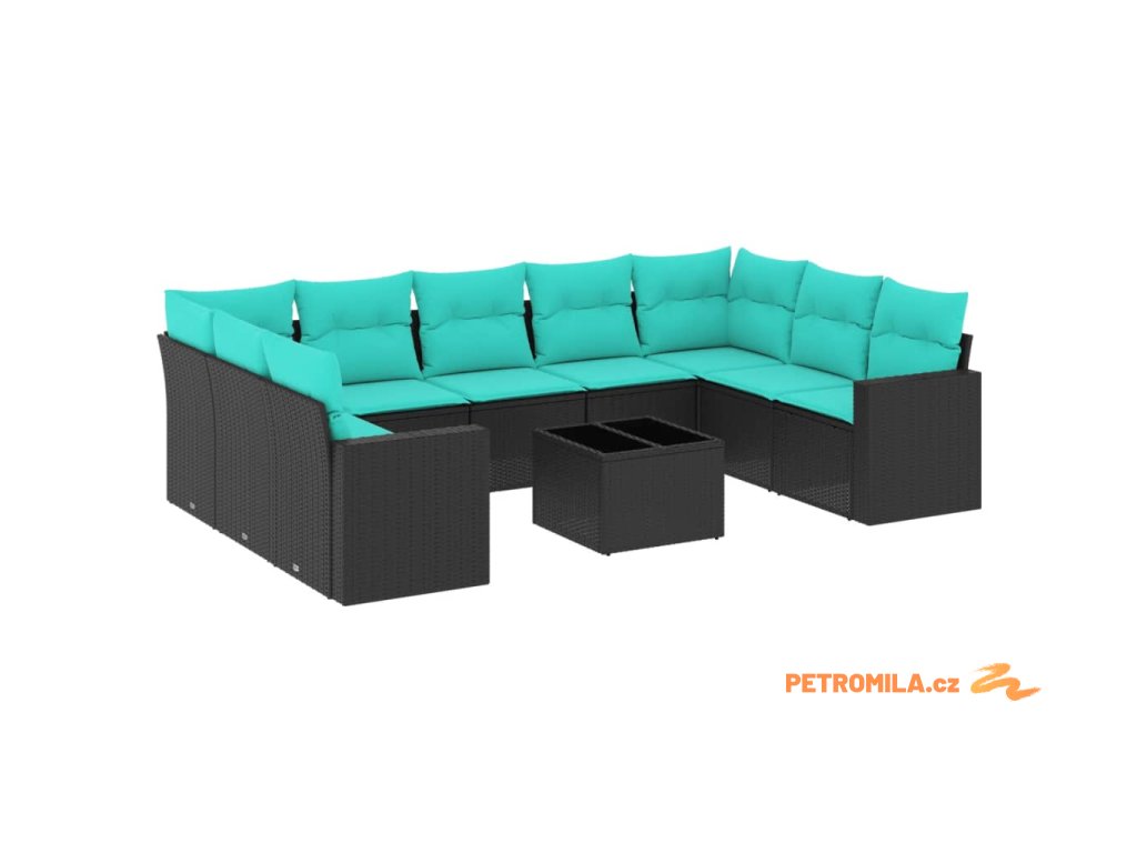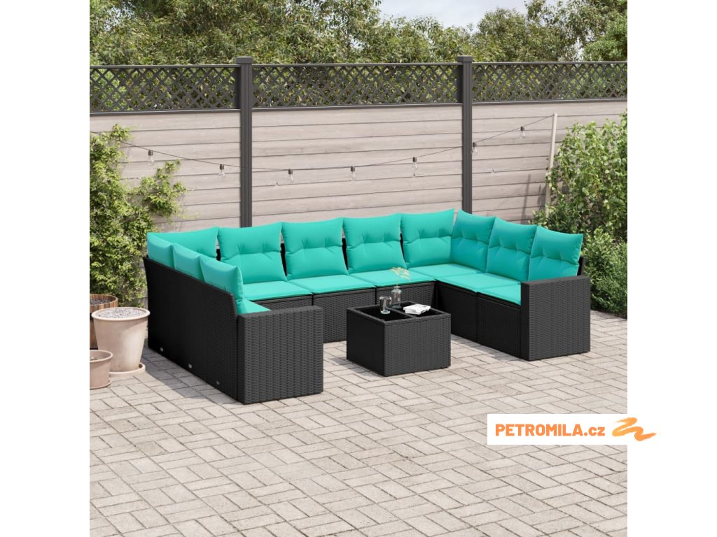 10dílná zahradní sedací souprava s poduškami černá polyratan