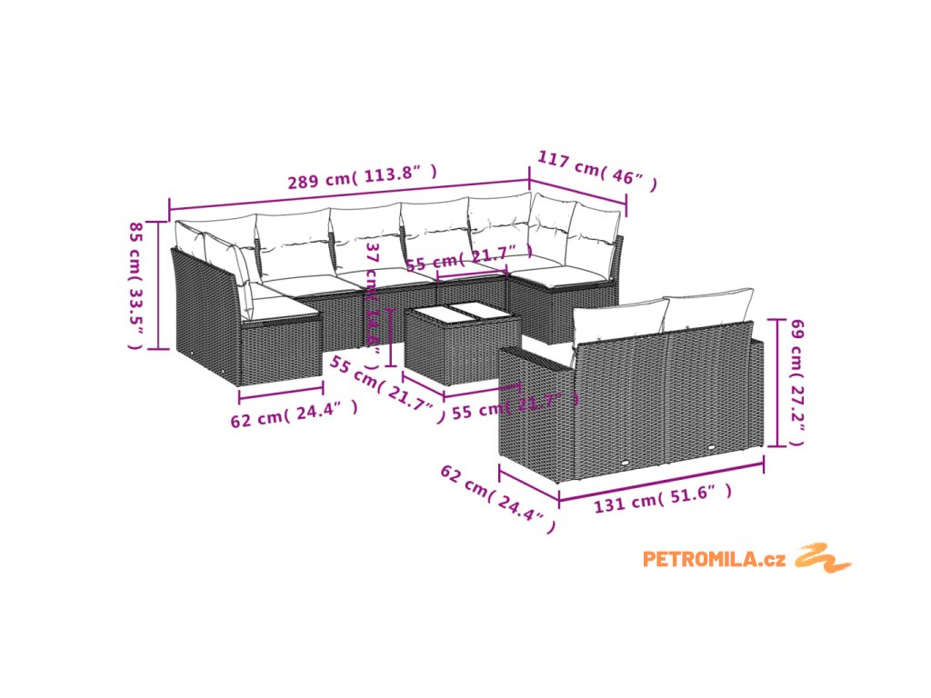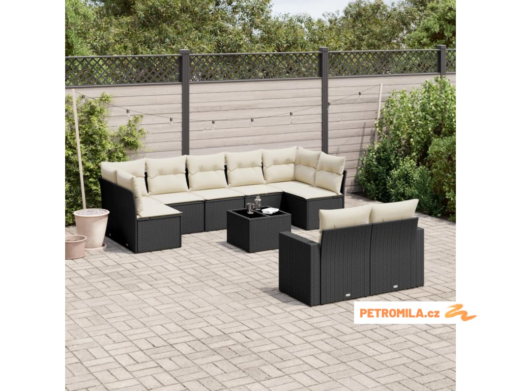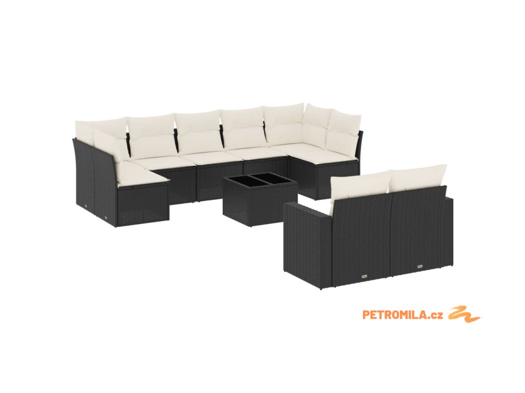10dílná zahradní sedací souprava s poduškami černá polyratan