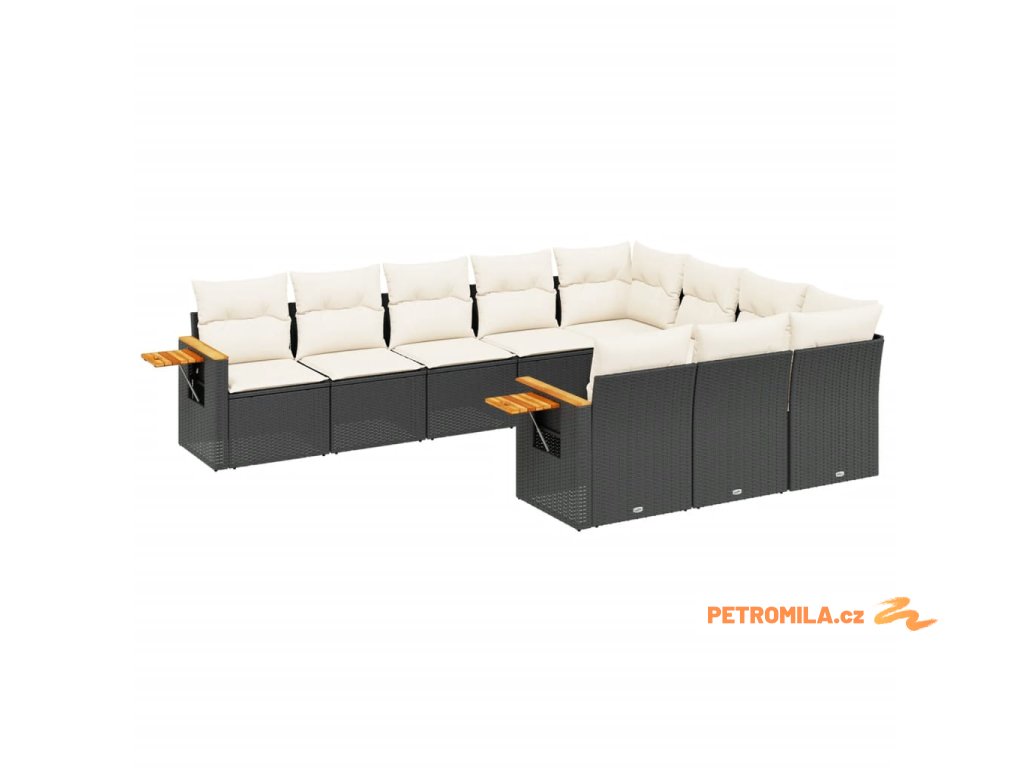 10dílná zahradní sedací souprava s poduškami černá polyratan