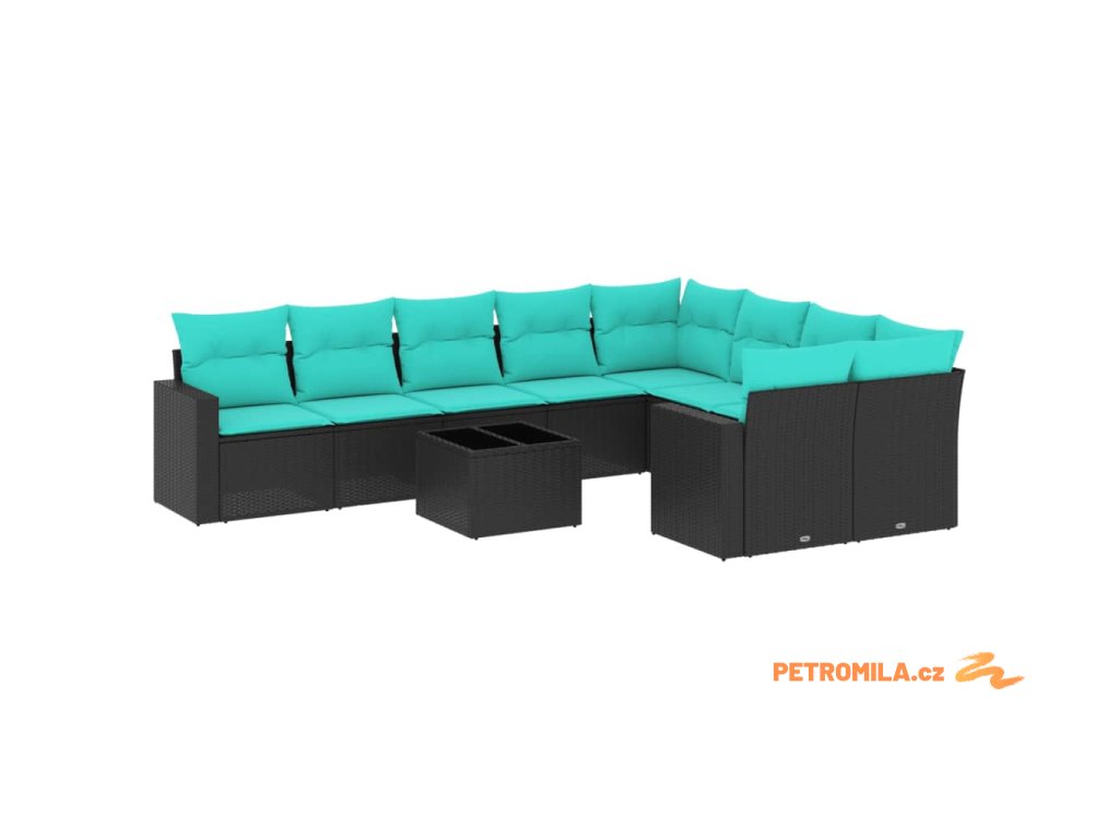 10dílná zahradní sedací souprava s poduškami černá polyratan