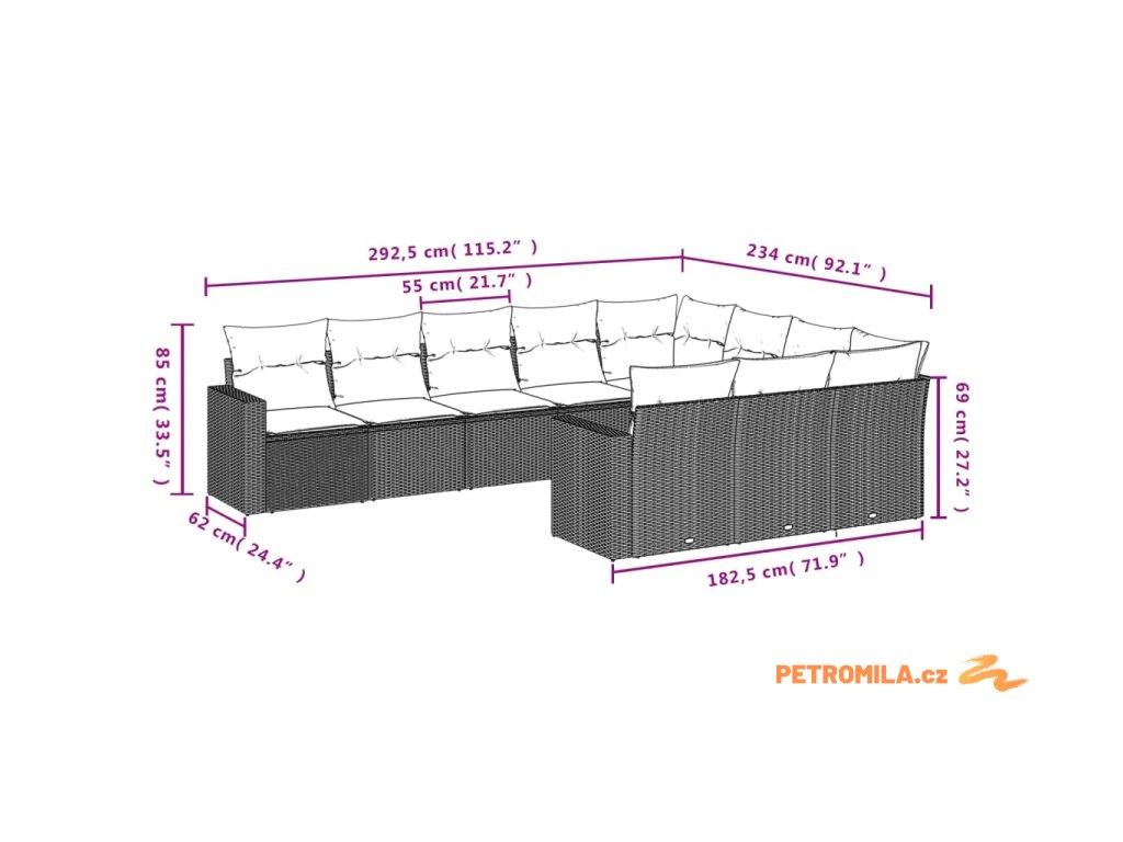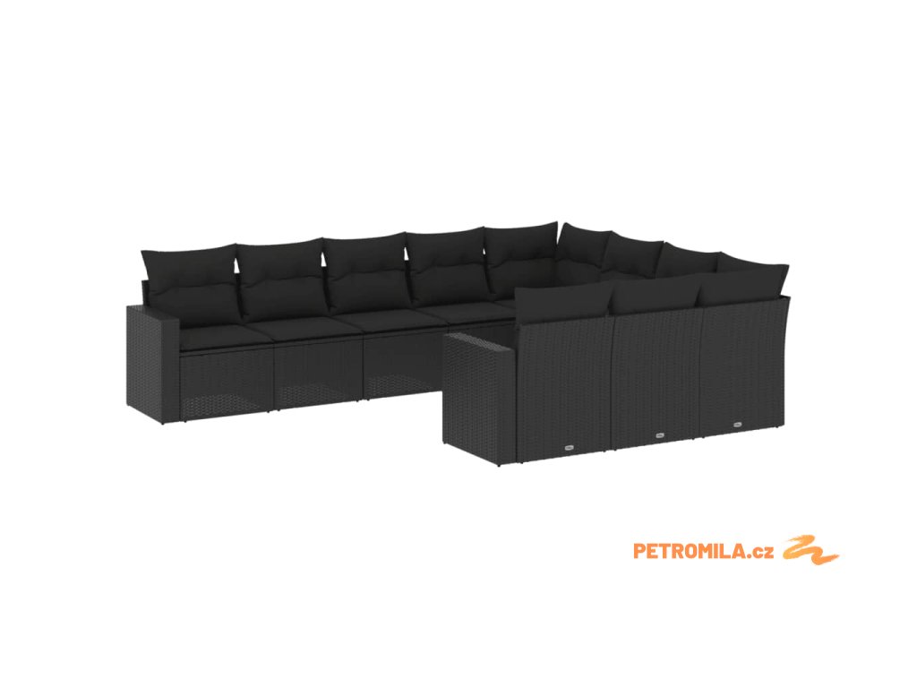 10dílná zahradní sedací souprava s poduškami černá polyratan