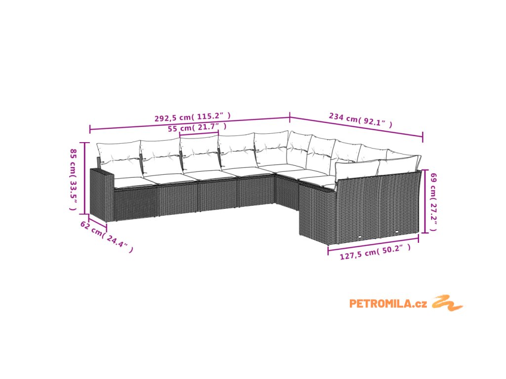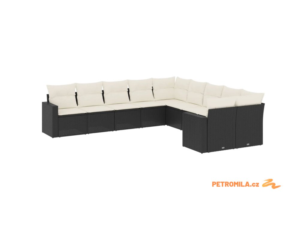10dílná zahradní sedací souprava s poduškami černá polyratan