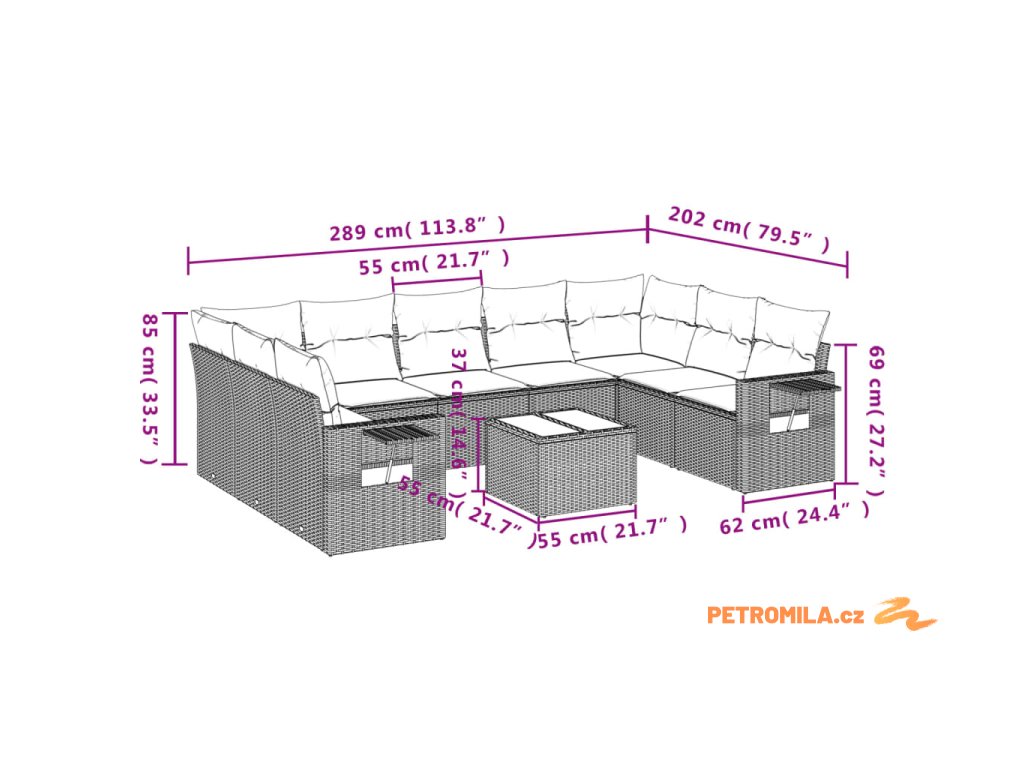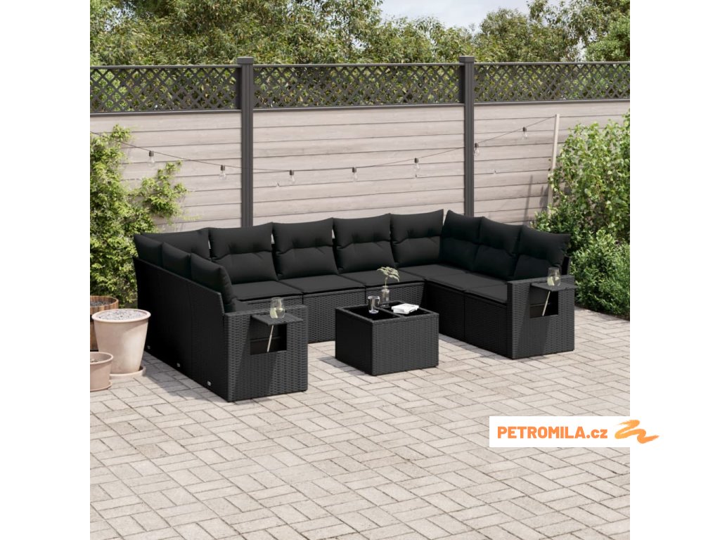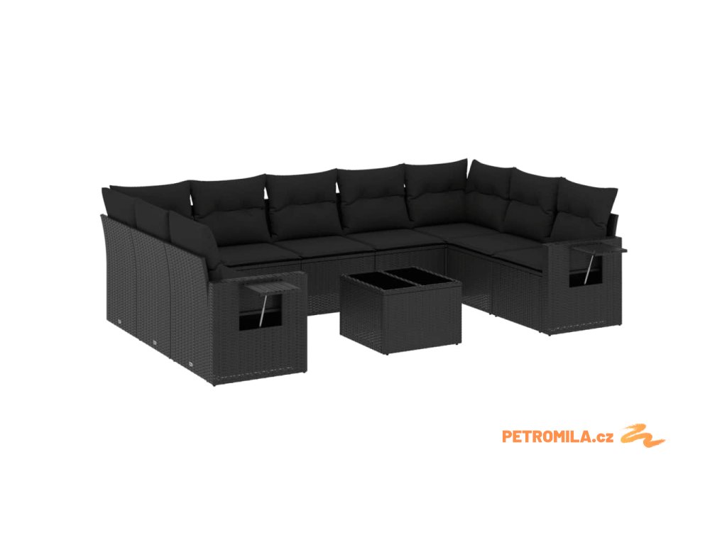 10dílná zahradní sedací souprava s poduškami černá polyratan