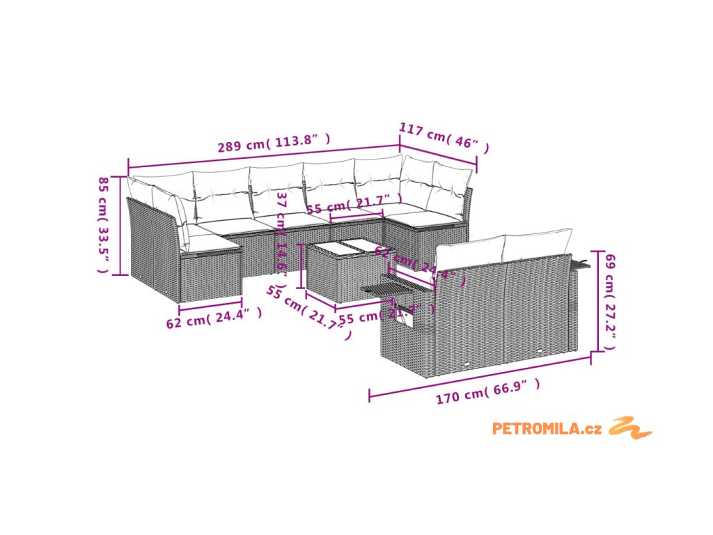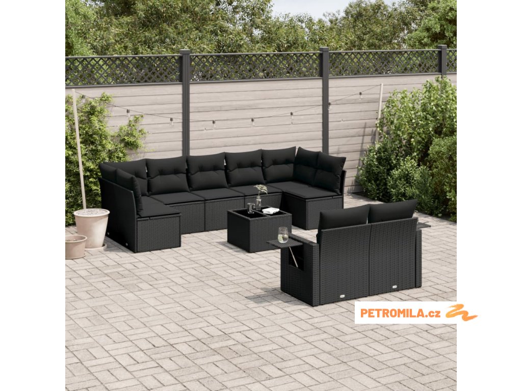 10dílná zahradní sedací souprava s poduškami černá polyratan