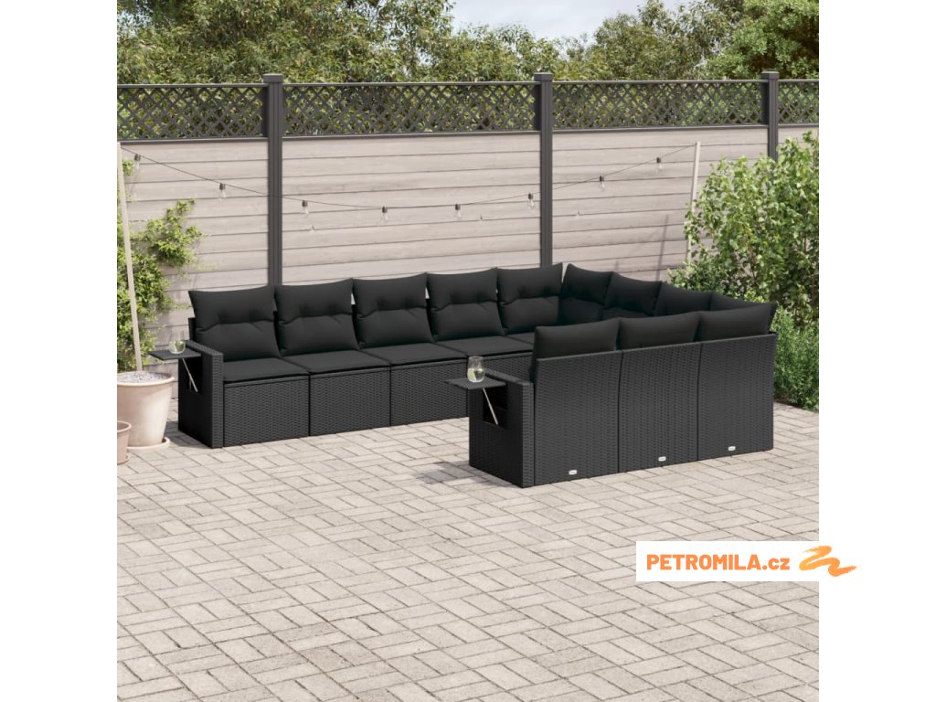 10dílná zahradní sedací souprava s poduškami černá polyratan