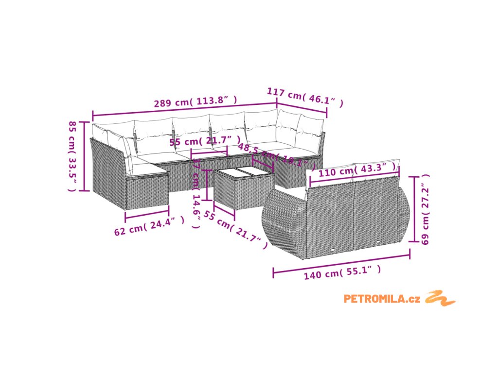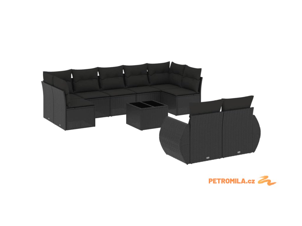 10dílná zahradní sedací souprava s poduškami černá polyratan