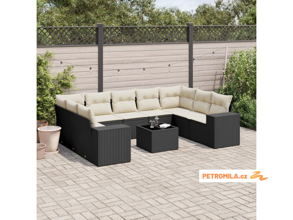 10dílná zahradní sedací souprava s poduškami černá polyratan
