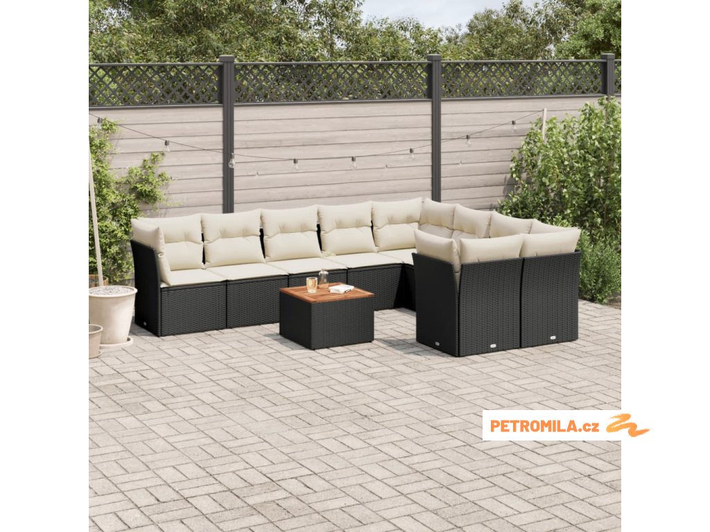 10dílná zahradní sedací souprava s poduškami černá polyratan