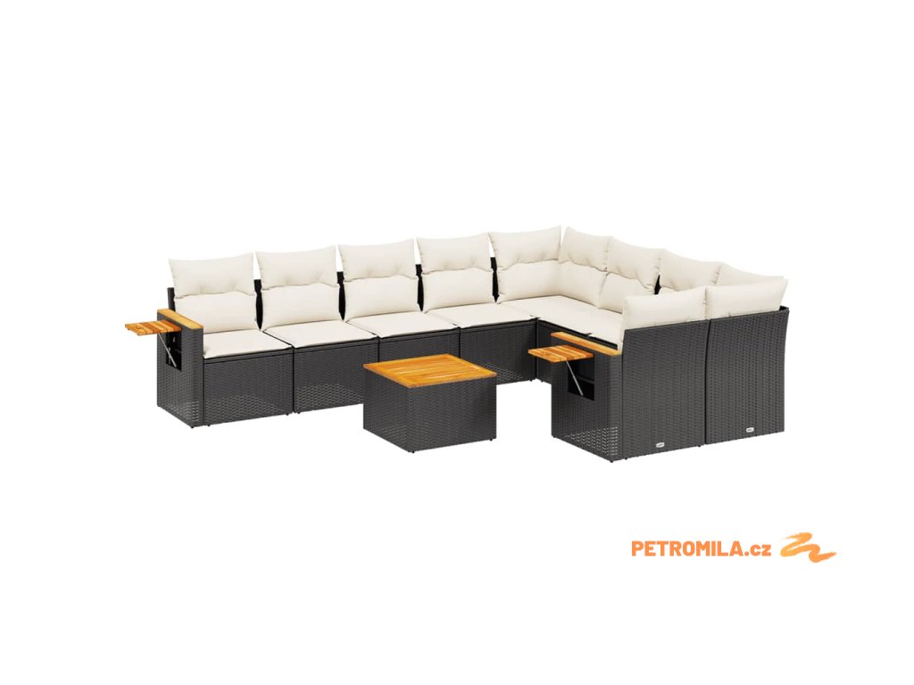 10dílná zahradní sedací souprava s poduškami černá polyratan