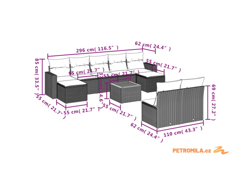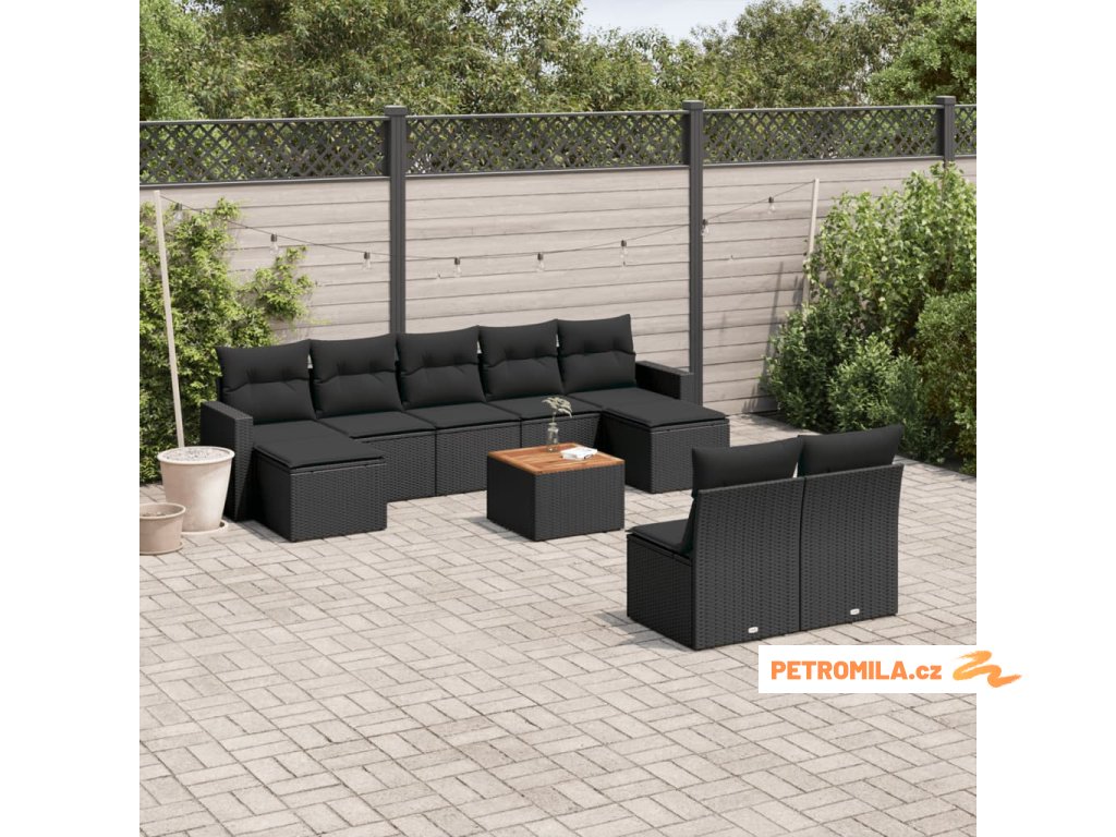 10dílná zahradní sedací souprava s poduškami černá polyratan