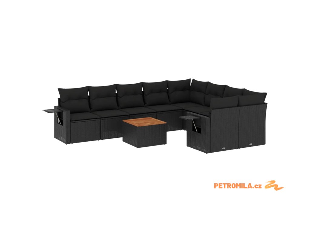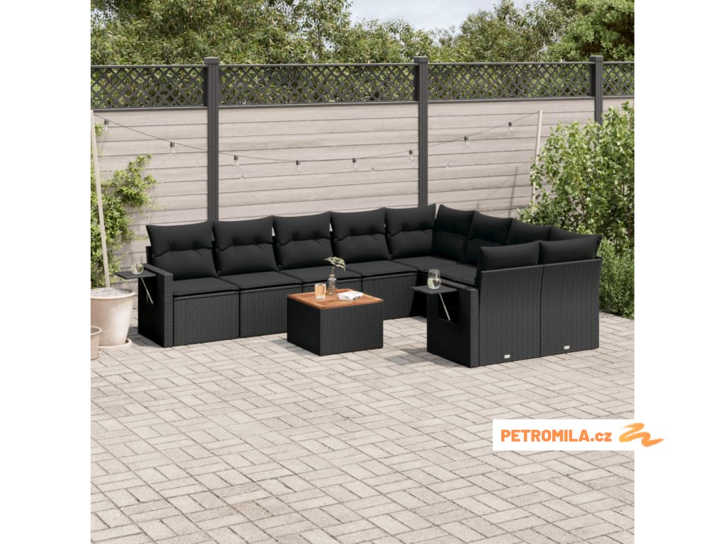 10dílná zahradní sedací souprava s poduškami černá polyratan