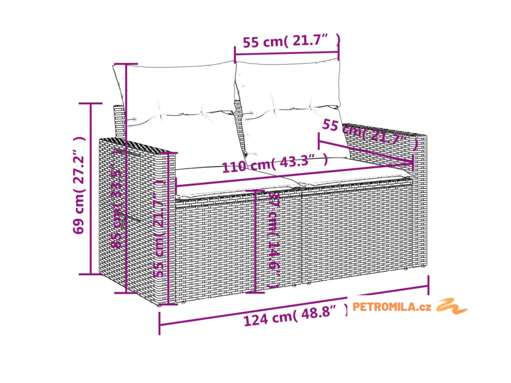 - Rozměry podušky za záda: 55 x 45 x 13 cm (D x Š x T)