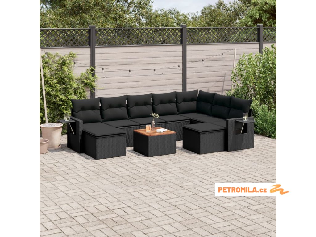 10dílná zahradní sedací souprava s poduškami černá polyratan