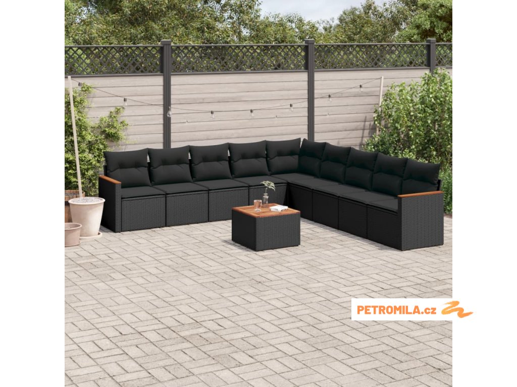 10dílná zahradní sedací souprava s poduškami černá polyratan