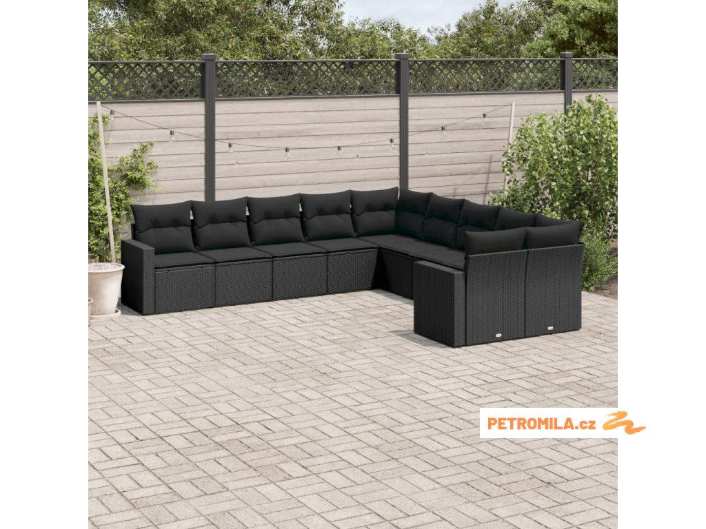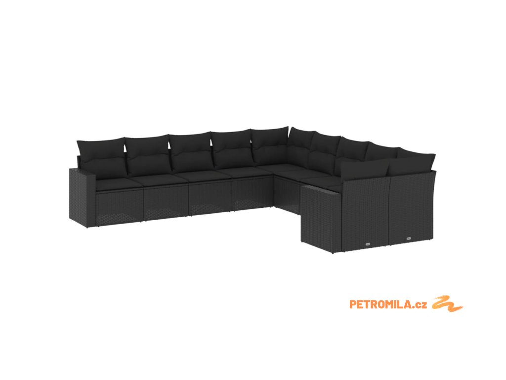 10dílná zahradní sedací souprava s poduškami černá polyratan
