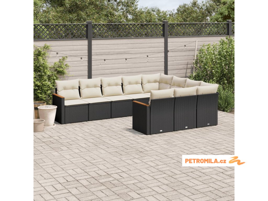 10dílná zahradní sedací souprava s poduškami černá polyratan