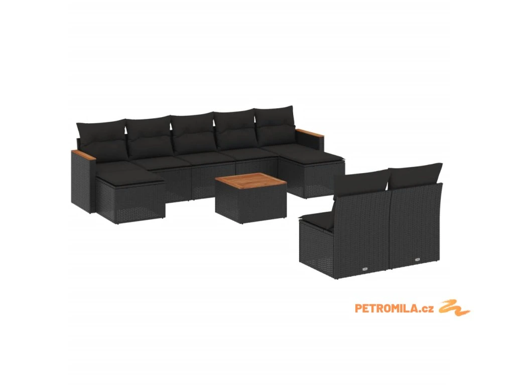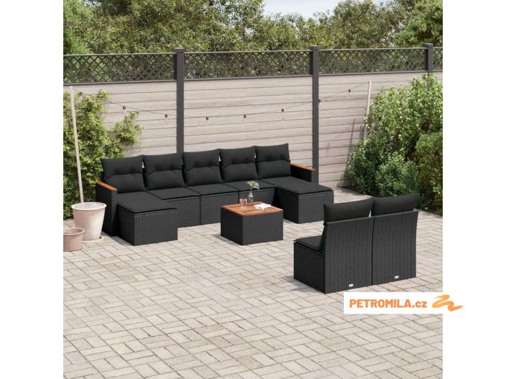 10dílná zahradní sedací souprava s poduškami černá polyratan