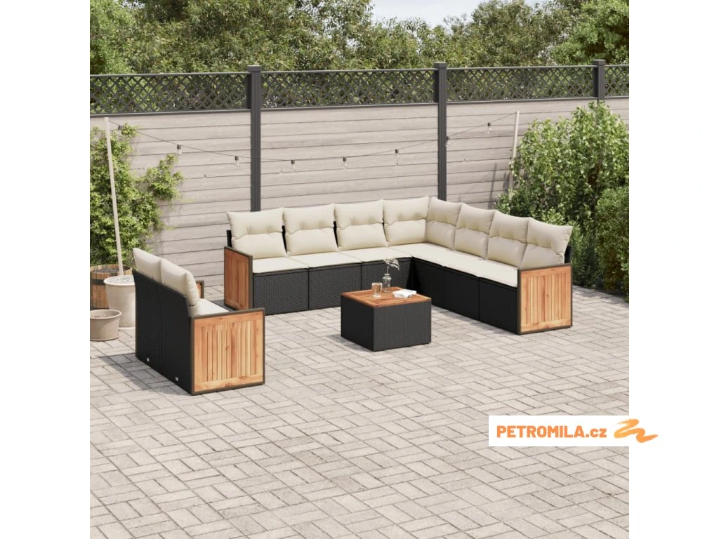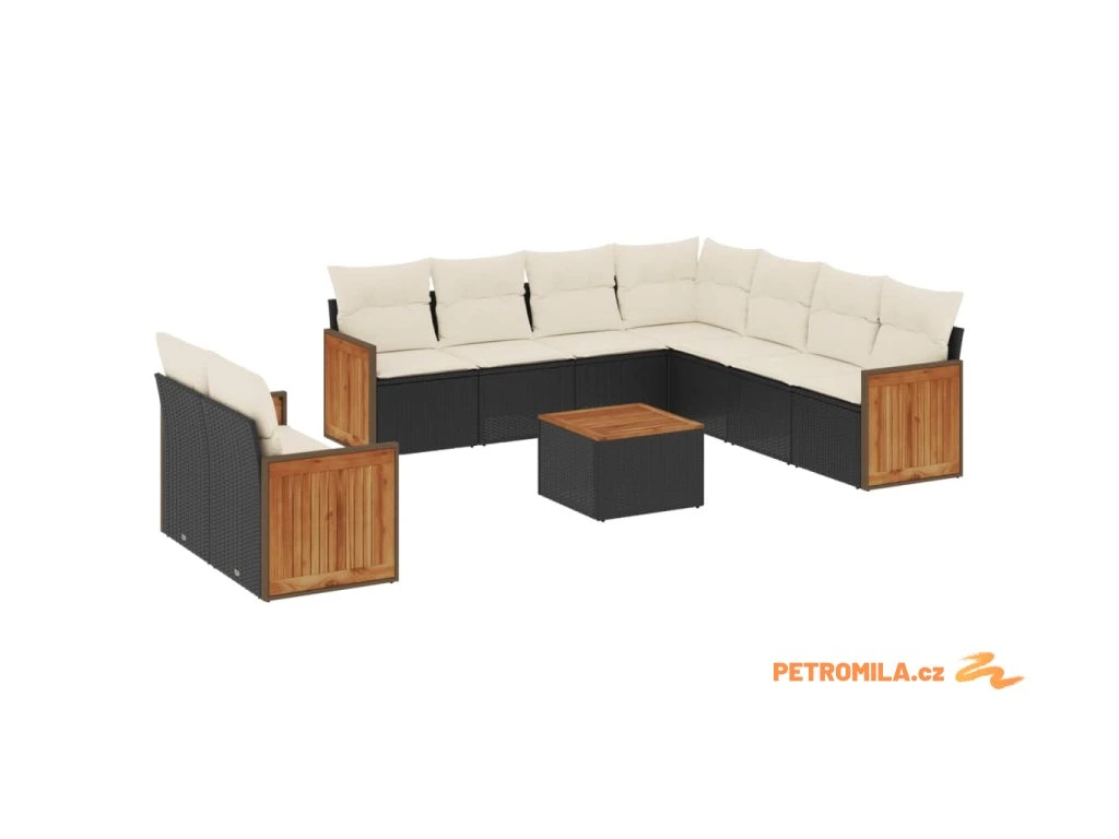 10dílná zahradní sedací souprava s poduškami černá polyratan
