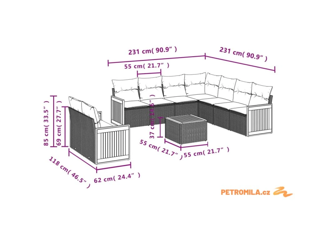 - Materiál: PE ratan, masivní akáciové dřevo s olejovou povrchovou úpravou