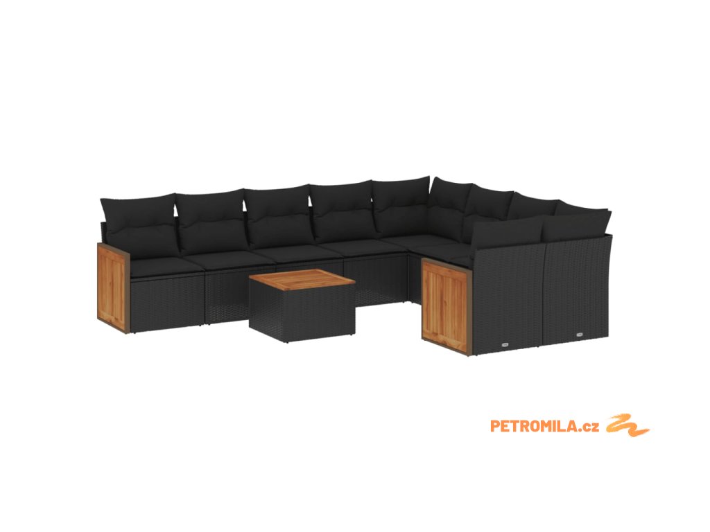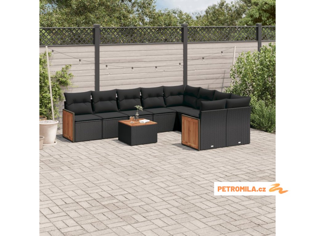 10dílná zahradní sedací souprava s poduškami černá polyratan