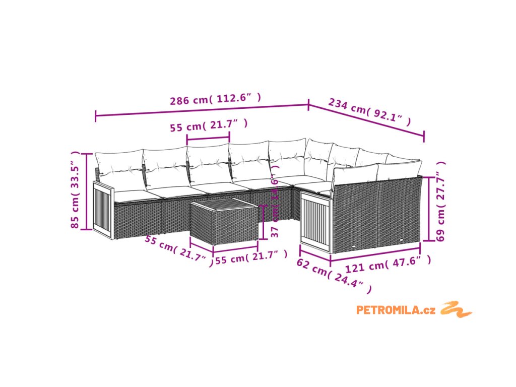 Tato zahradní sedací souprava je dokonalým doplňkem vaší zahrady, terasy nebo dvorku a poskytne vám pohodlné a příjemné místo, kde si můžete povídat s rodinou a přáteli nebo jen tak odpočívat a užívat si pobyt venku.