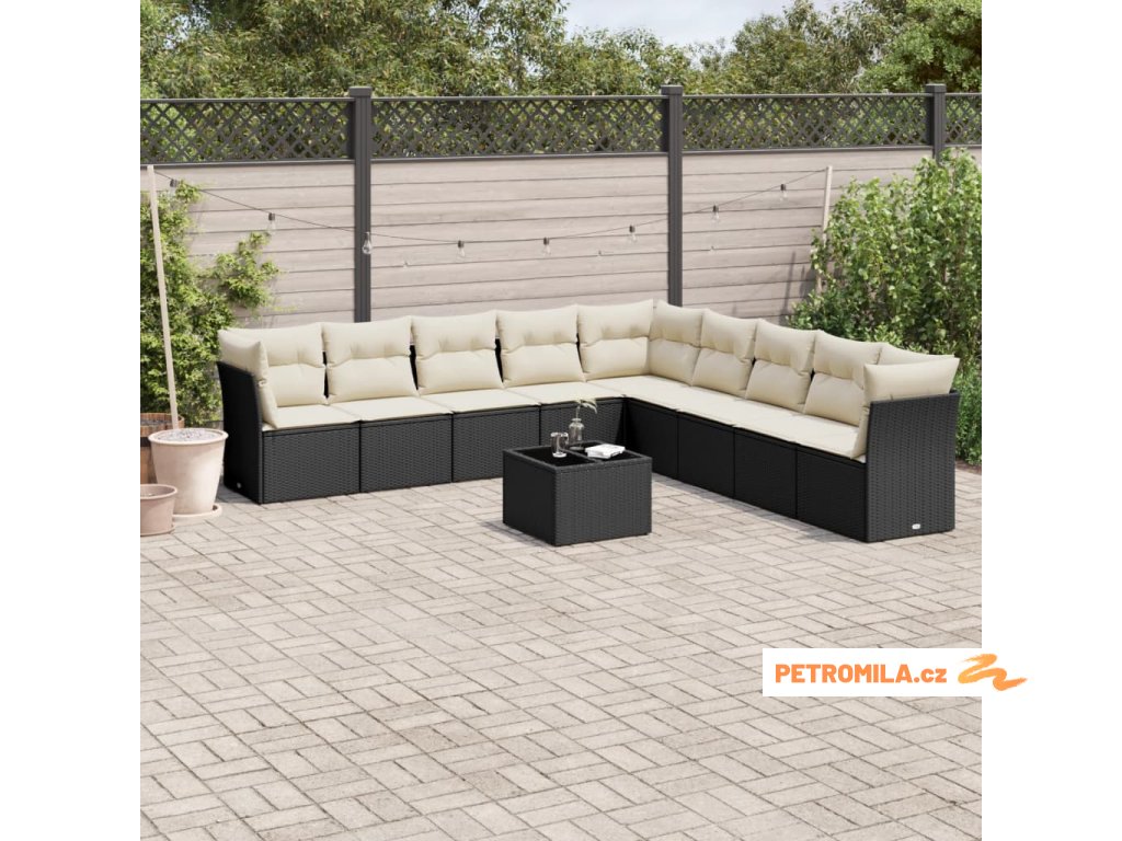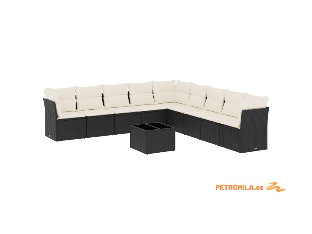 10dílná zahradní sedací souprava s poduškami černá polyratan