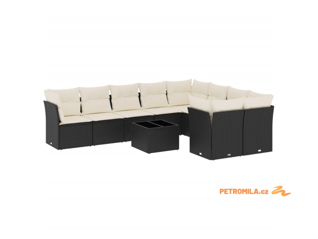 10dílná zahradní sedací souprava s poduškami černá polyratan