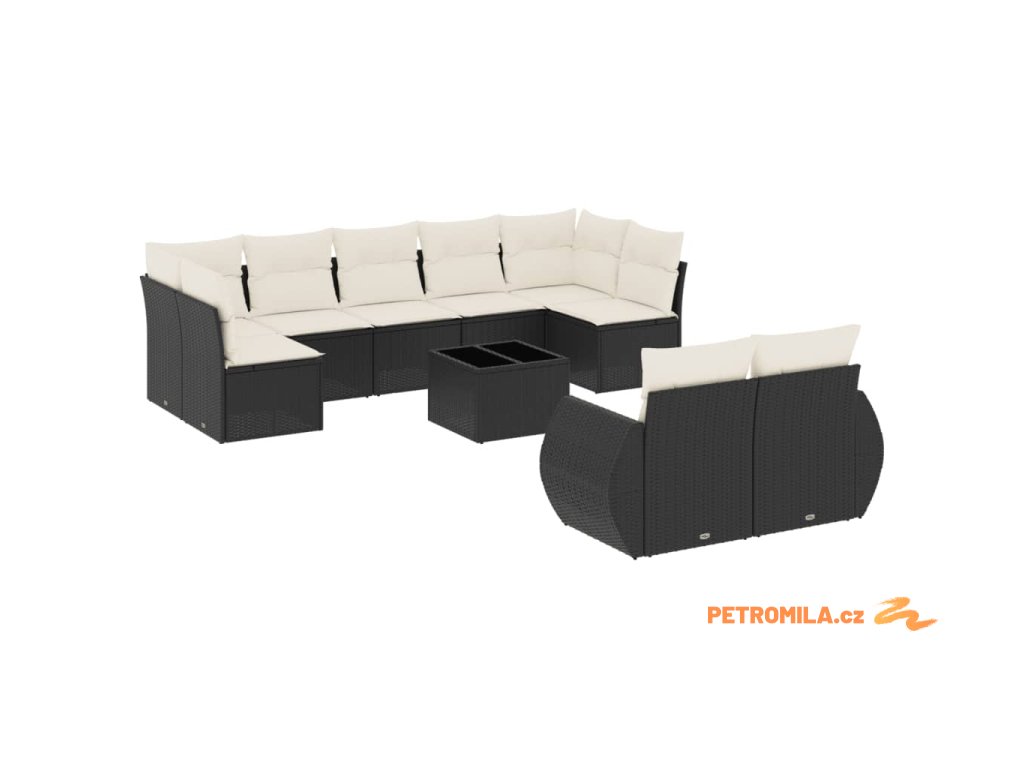 10dílná zahradní sedací souprava s poduškami černá polyratan