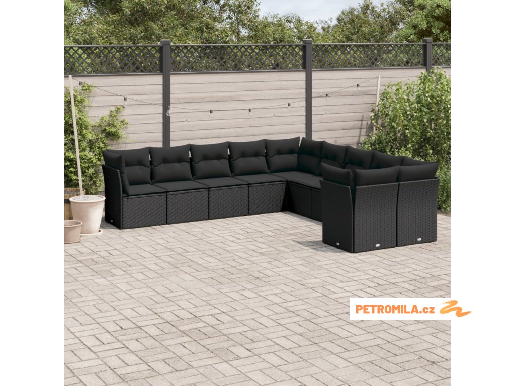 10dílná zahradní sedací souprava s poduškami černá polyratan