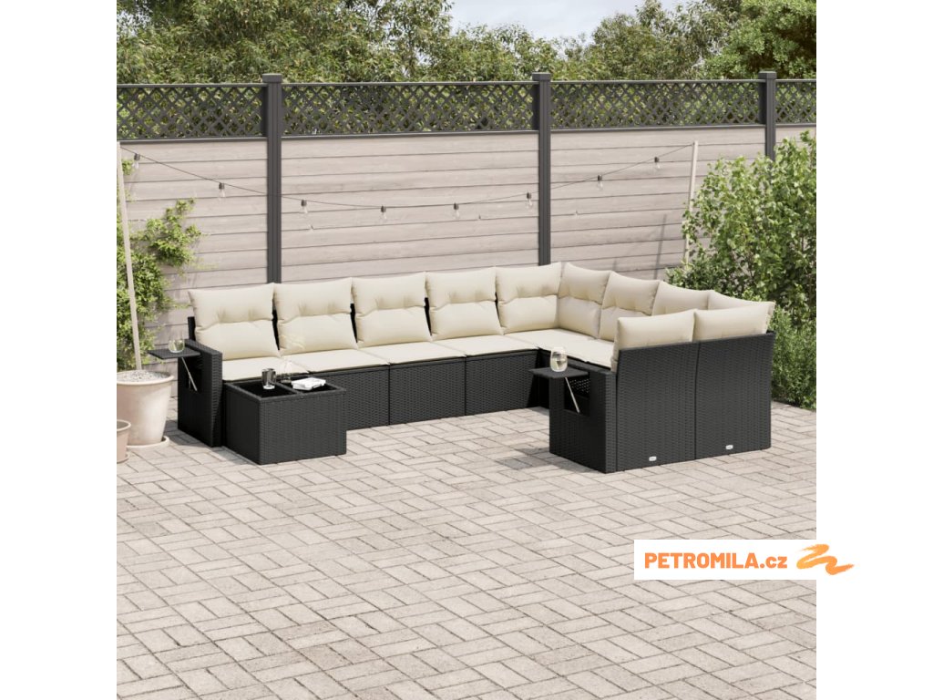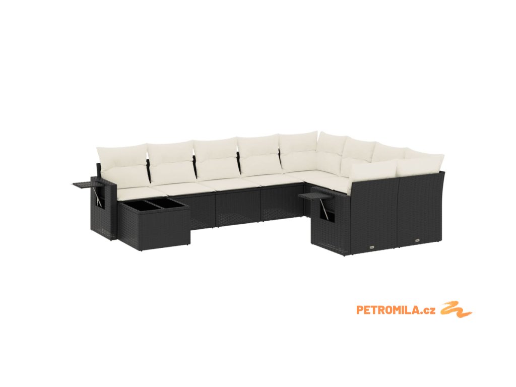 10dílná zahradní sedací souprava s poduškami černá polyratan
