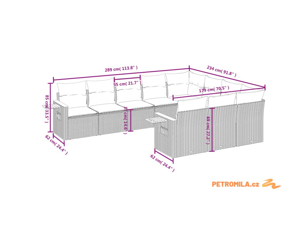 Sada zahradních pohovek s úložištěm 11 pcs Šedá Poly ratan