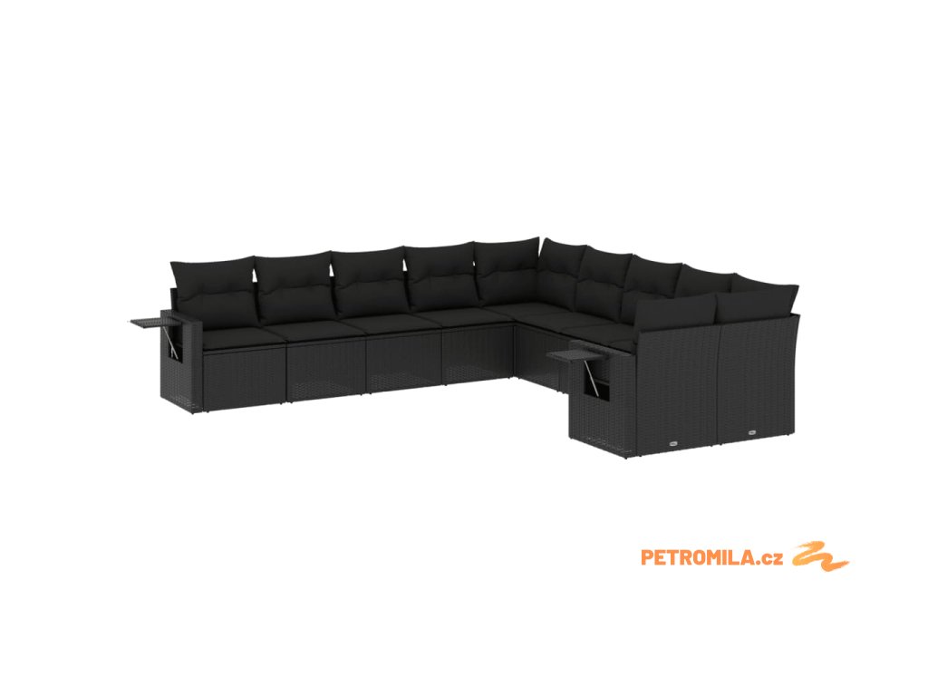 10dílná zahradní sedací souprava s poduškami černá polyratan