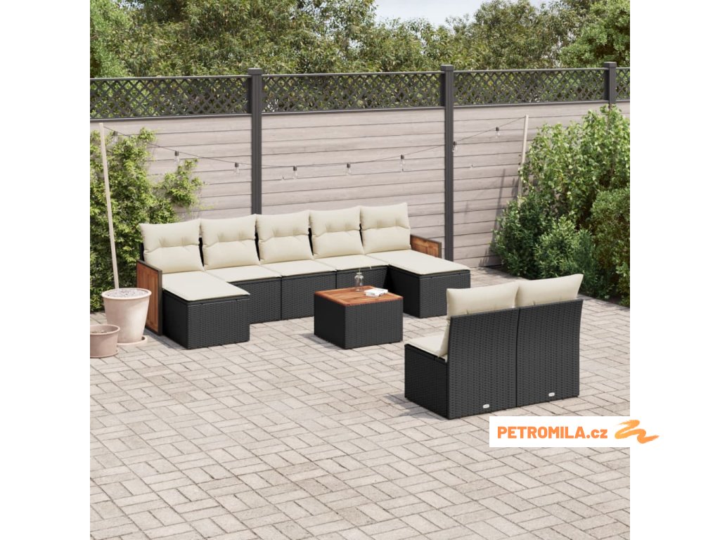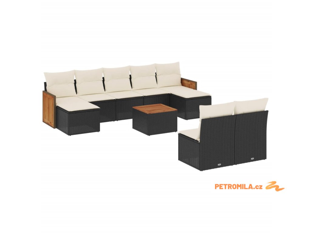 10dílná zahradní sedací souprava s poduškami černá polyratan